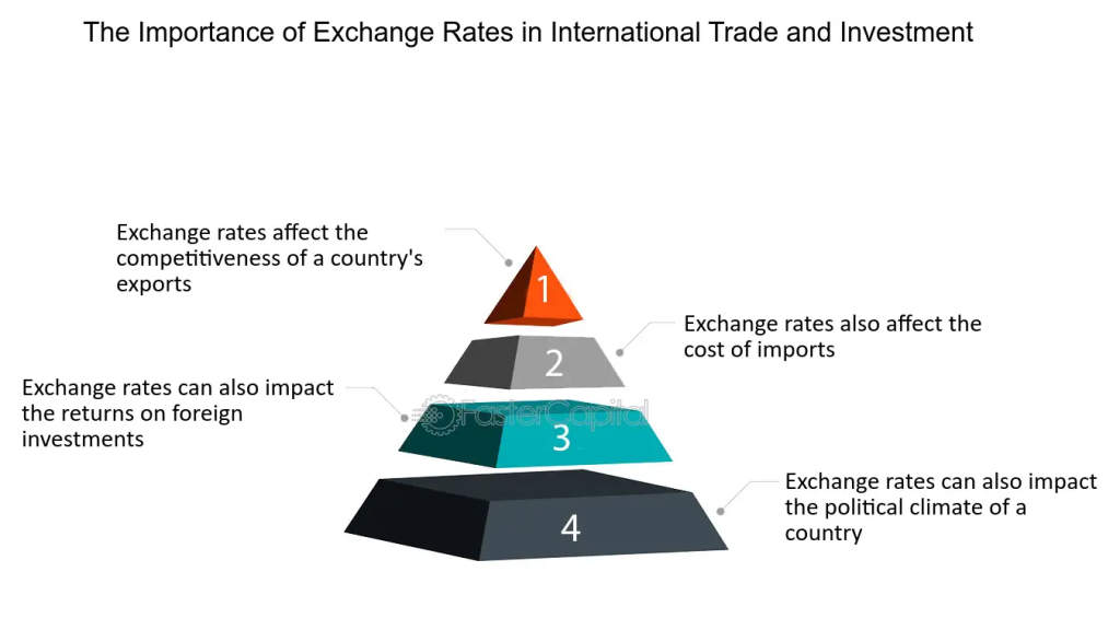- Exchange rates impact export competitiveness, influencing how products are priced and sold globally.