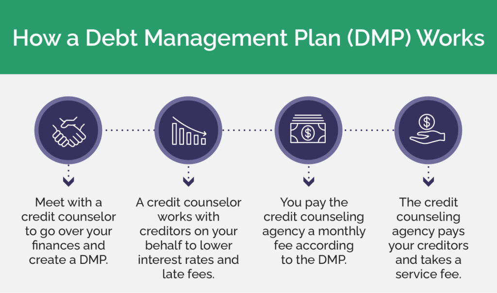 - ΕΝΑ Debt Management Plan (DMP) consolidates your various unsecured debts (like credit cards) into one single monthly payment made to a credit counseling agency.