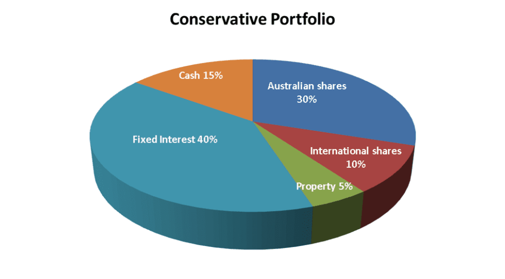 - International shares και property add diversification, albeit with smaller allocations (10% and 5%, respectively).