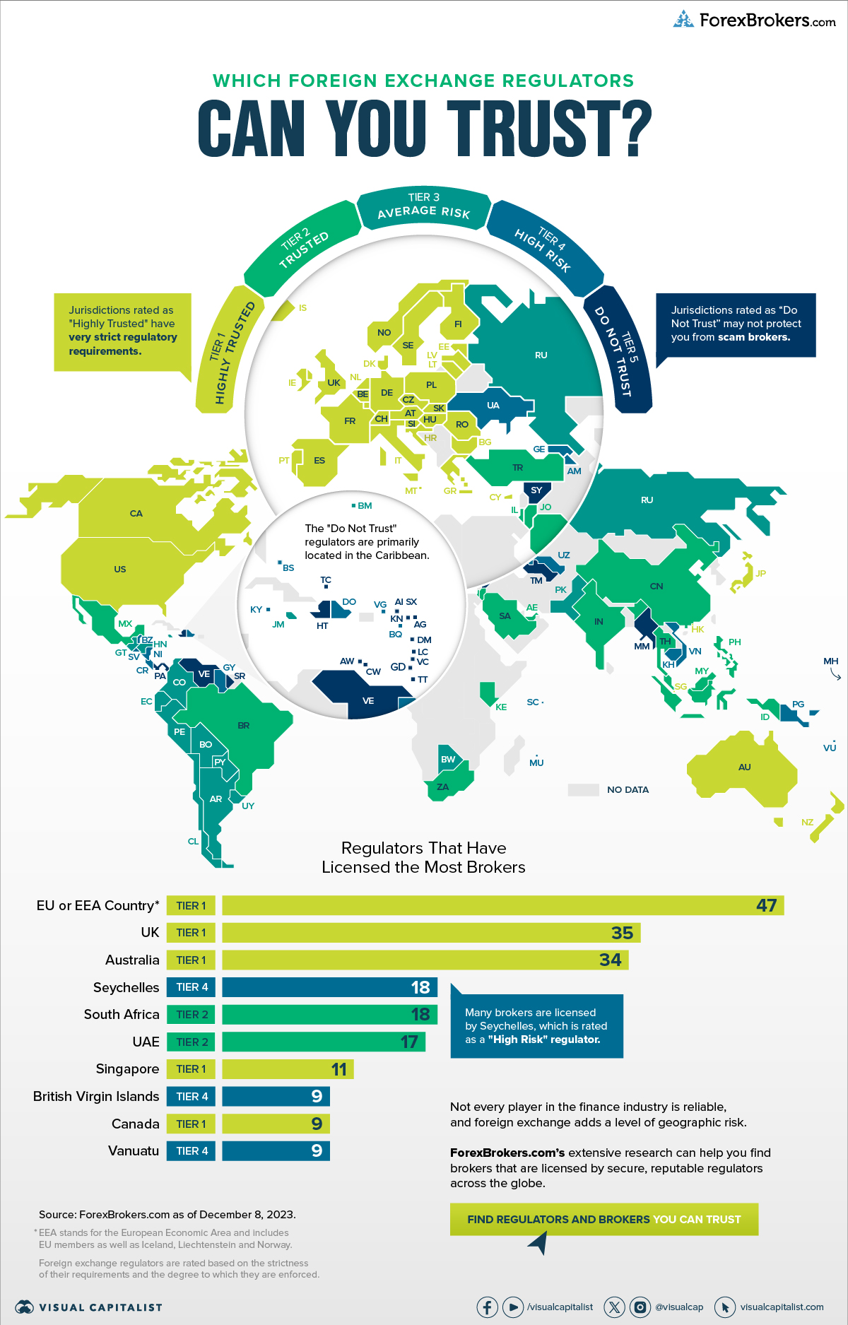 - Regulatory tiers help traders and investors determine the reliability of brokers based on where they are licensed.