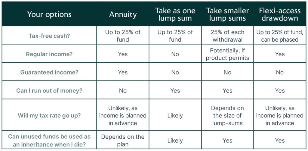 - Flexi-access drawdown allows for phased withdrawals, offering more flexibility in managing income.