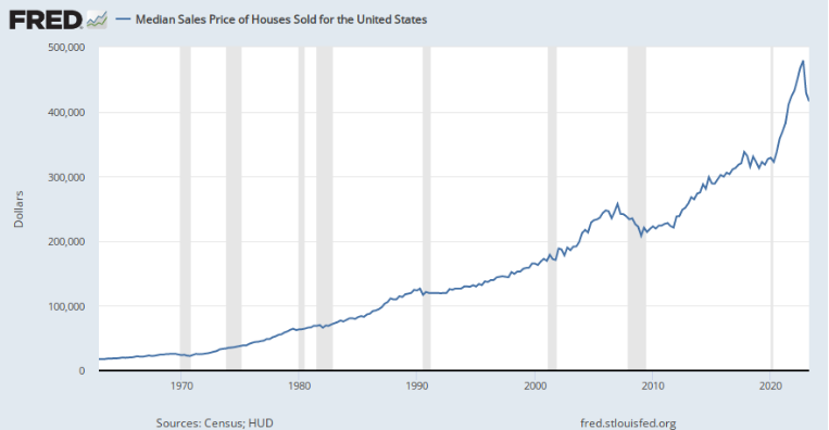 - The median sales price of houses in the U.S. has generally been rising since 1963.