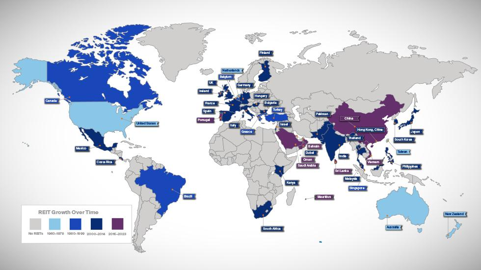 - Emerging markets, such as China and India, display recent REIT adoption, reflecting ongoing market evolution.