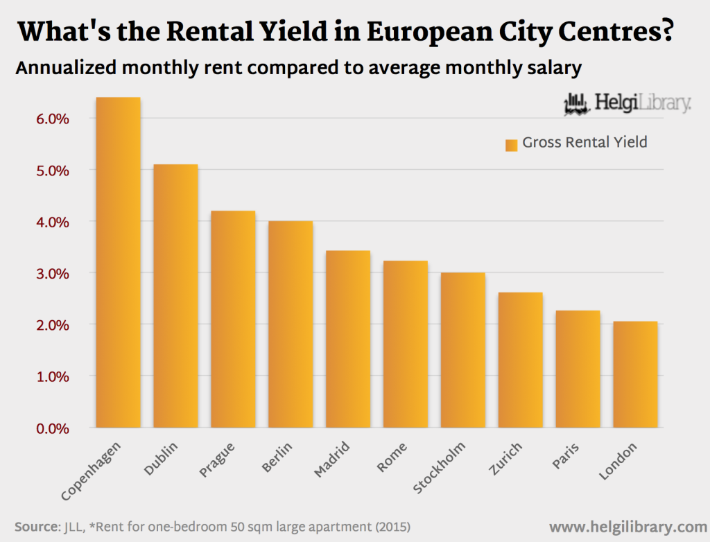 - Copenhagen offers the highest gross rental yield at over 6%, indicating strong rental profitability.