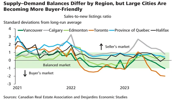 - Overall, Canadian housing markets are becoming increasingly buyer-friendly, particularly in larger cities.