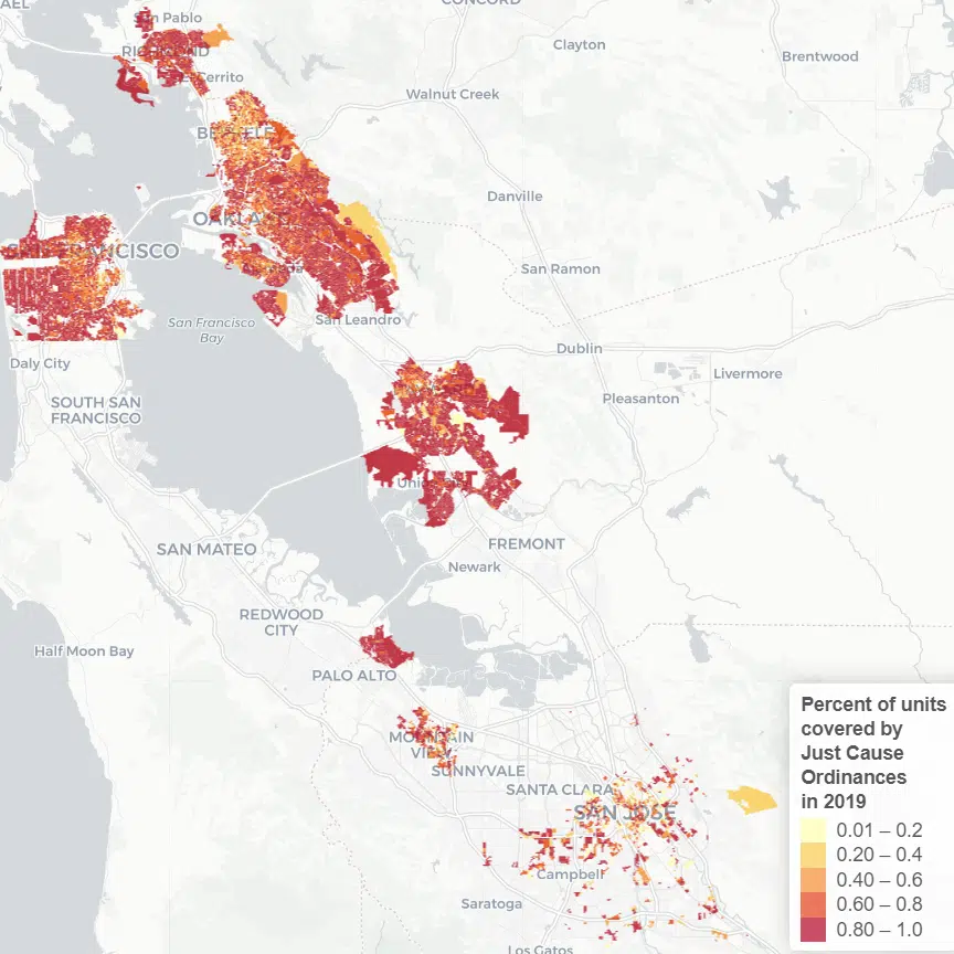 - High coverage in urban areas: Central cities like San Francisco and Oakland have extensive tenant protections.