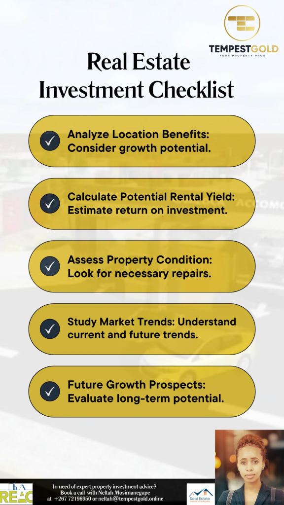 This checklist is a practical tool for real estate investors e students of finance. It can help users identify and evaluate the best investment opportunities, ensuring profitability and minimizing risks. By focusing on location, market trends, and future growth, users can make smarter financial decisions and build a successful real estate portfolio.